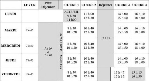 Remarque : Les classes de Terminale Bac Pro et les classes de CTETA, disposant de plus d’autonomie, bénéficient de sorties ; certaines libres en fin de journée.